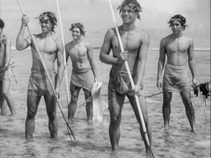 As I went over the basic facts with my nine year old the next morning, as I sometimes do, I realized that this is actually a very tragic film. Almost 90 year old spoiler alert: Matahi and Reri run away to a different island only to be tracked down by the elder rather quickly. He threatens to kill Matahi if the girl doesn’t give in to her fate and she finally agrees because she loves him so much. Matahi refuses to give up however and follows her ship as far as he can until he finally succumbs to exhaustion and drowns. So basically the movies ends on a downer, except for the gods, who finally got their Forever Virgin.