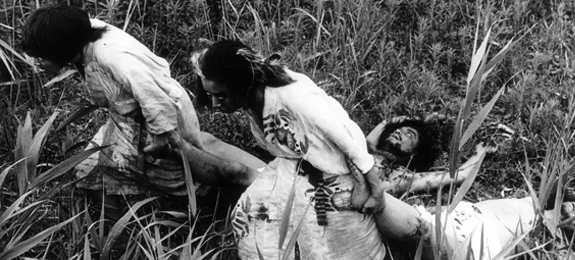 Since I mentioned genre, I think it’s fitting to add that Onibaba is considered a horror film to many people. That strikes me as odd because the mask doesn’t even show up until the last half to two thirds of the film. Most of the film is comprised of the daughter in law sneaking out of her hut to get with the creepy neighbor and the old woman being angry about it. I suppose that the first few scenes that show the woman killing the soldiers and then throwing them in a pit may seem scary, but I wouldn’t classify the whole film as ‘horror’. The mask itself was rightfully scary, especially when the daughter-in-law encountered it in the reeds and the final scene where the old woman finds she can’t remove the mask is also unnerving. But not a horror film ,in my opinion.